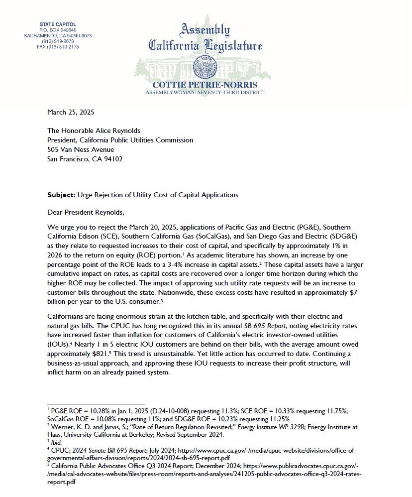 LettersUrge Rejection of Utility Cost of Capital ApplicationsMarch 25, 2025Read MoreUrge Rejection of Utility Cost of Capital Applications